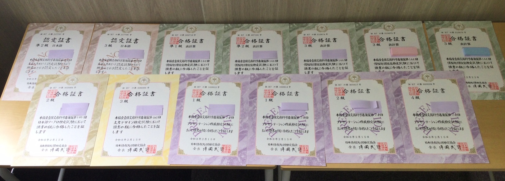 パソコン検定の合格証書が届きました!👏✨